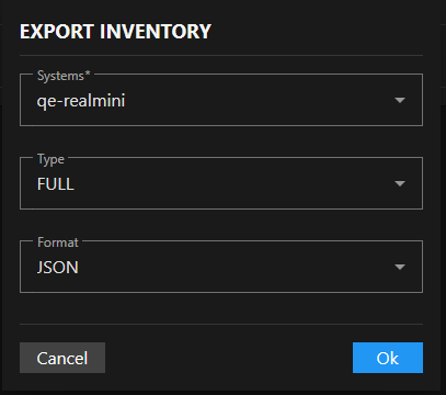 Click Ok to execute the inventory export and download the resulting file. The export file downloads to your default download location with the inventory data in your selected format.
