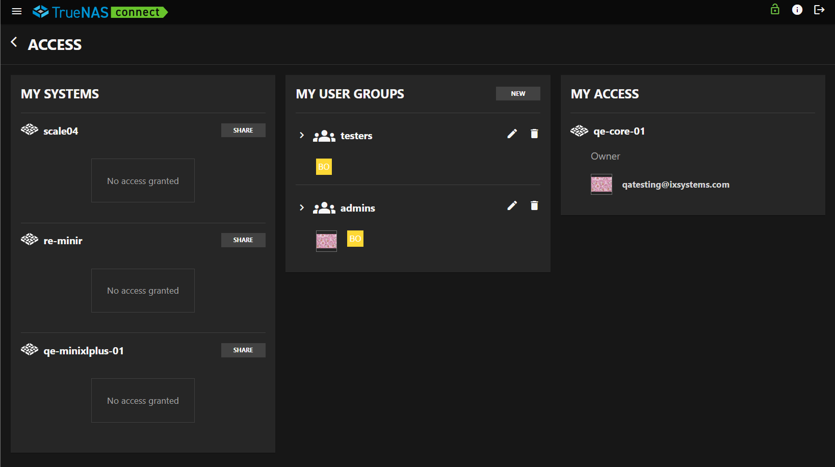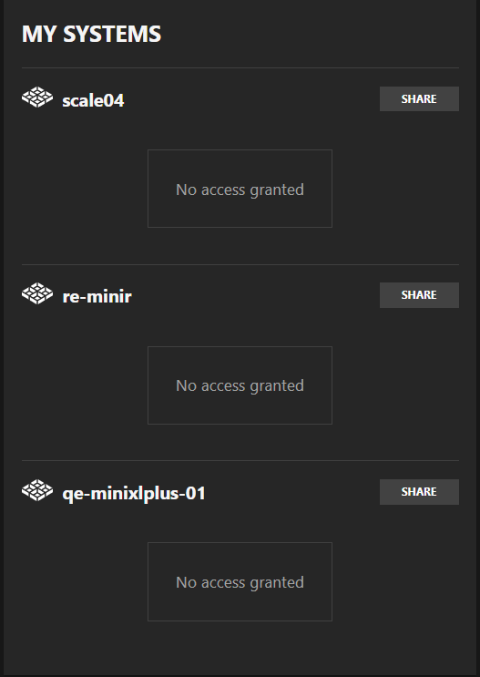 - My Access - Shows systems shared with the logged-in account.