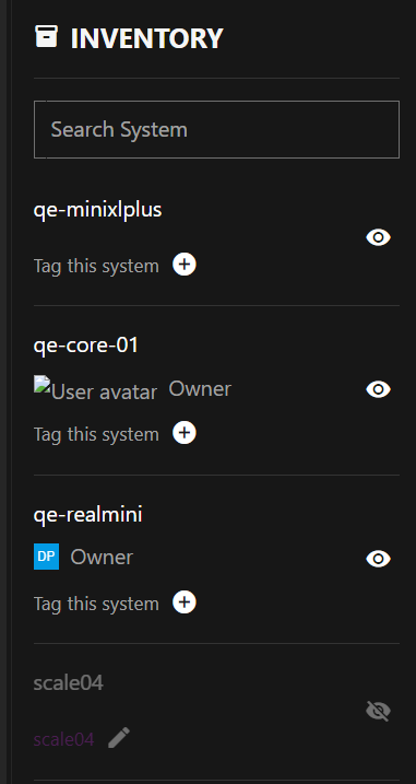 add tag icon shows a list of tags added to the system that you can select and assign to the system.The