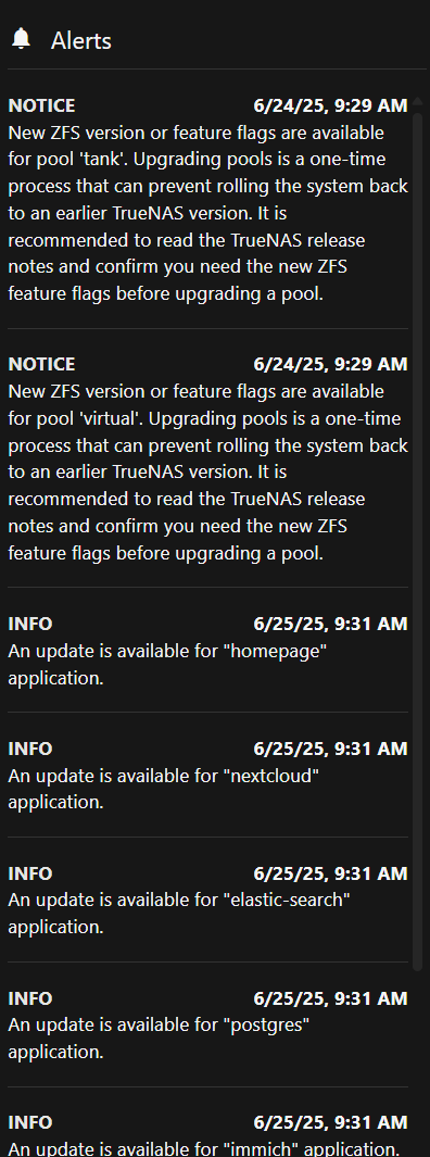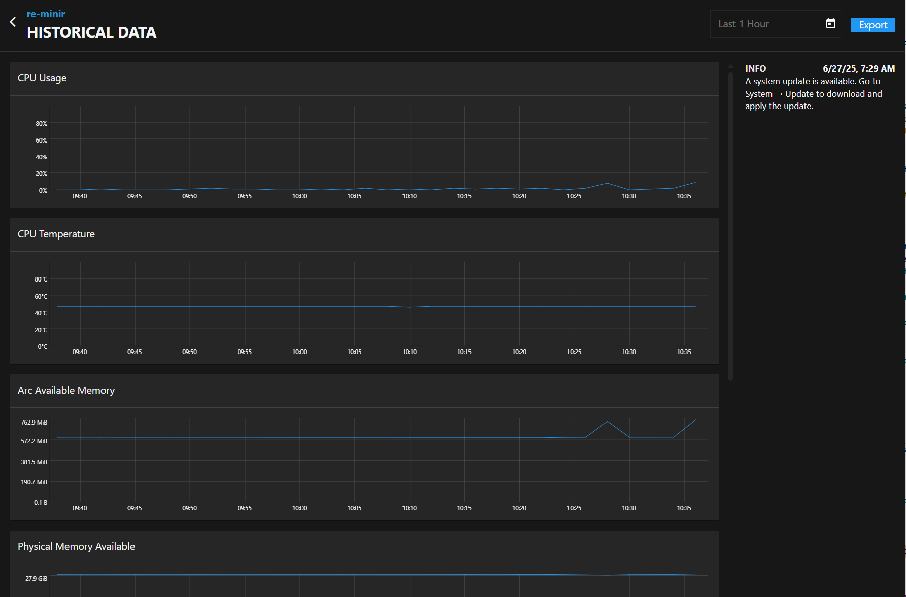 - Uptime - The days, hours, minutes, and seconds from the last time the TrueNAS system restarted.