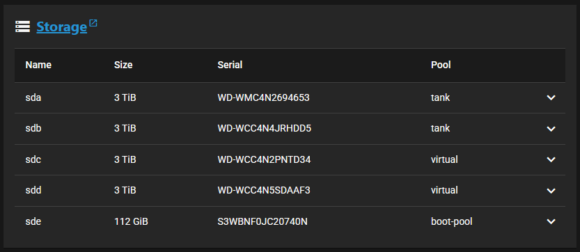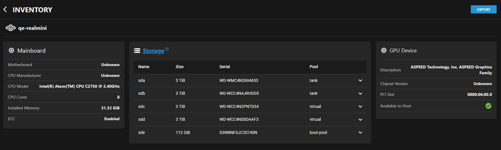 - Systems: High-level system information only including system ID, hostname, serial number, TrueNAS version, CPU model, core count, and total memory - ideal for system inventory and asset tracking