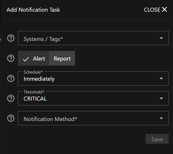 - Alert: Sends notifications when alert conditions are triggered based on threshold settings